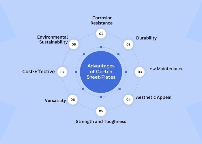 Corten sheets and plates refer to weathering steel sheets or plates made from a type of steel alloy known as Corten steel or weathering steel. Corten steel is a high-strength, low-alloy steel that forms a protective rust-like appearance when exposed to weathering elements like moisture and air.